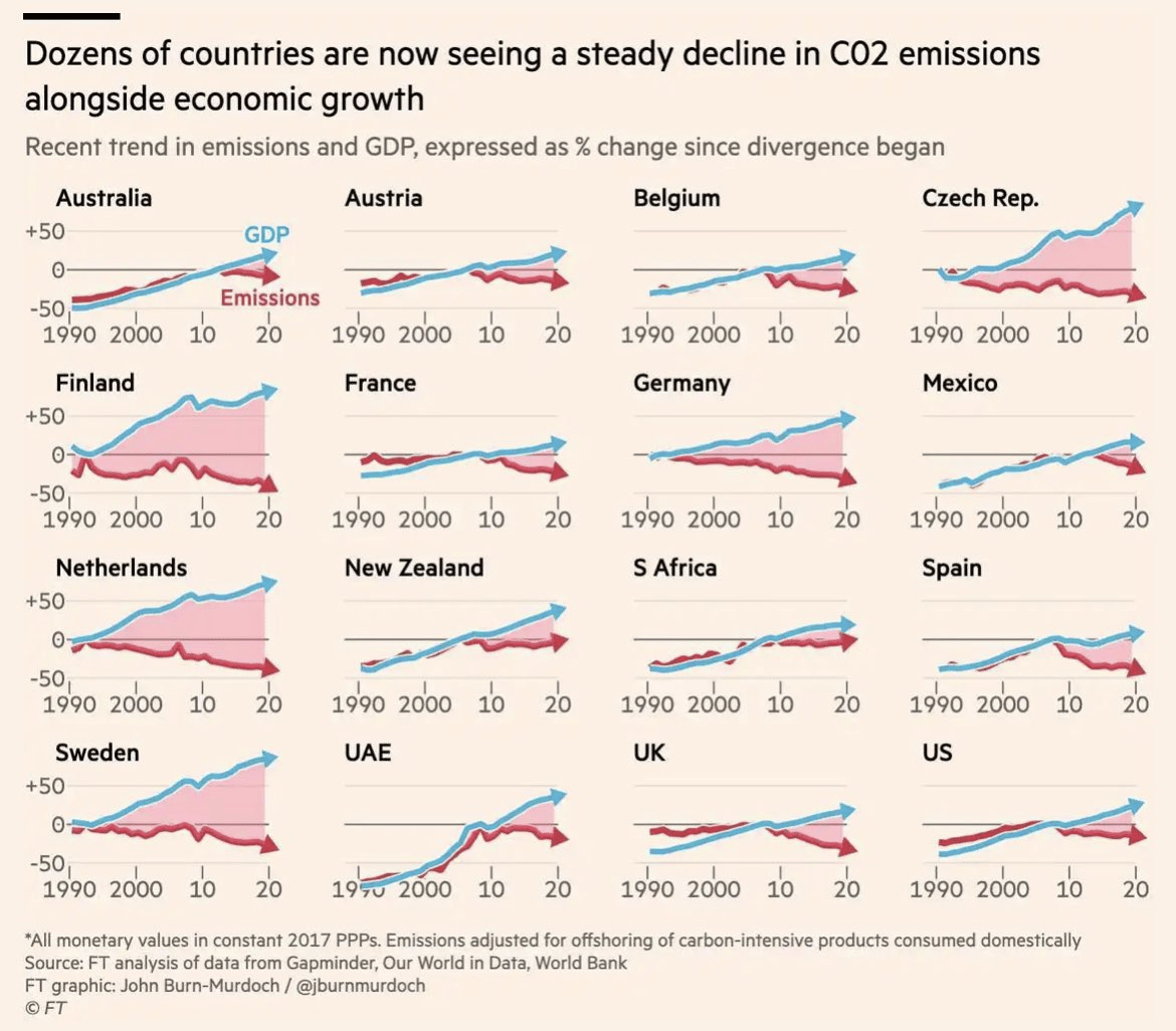 It's refreshing to see wealthy countries finally learn how to decouple carbon emissions from economic growth. This is especially significant for nations like Australia and New Zealand that historically have relied on coal.